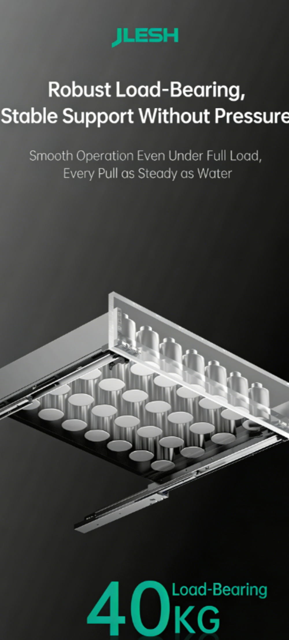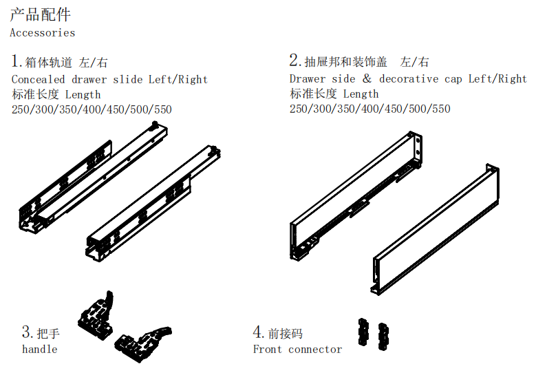 Полное выдвижение направляющих с доводчиком (совместимо со всеми типами направляющих, например, с механизмом открывания нажатием / механизмом открывания нажатием с доводчиком / механизмом открывания нажатием с ручкой).
