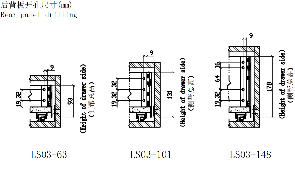 Высота буфета: 93, 131, 178 мм.