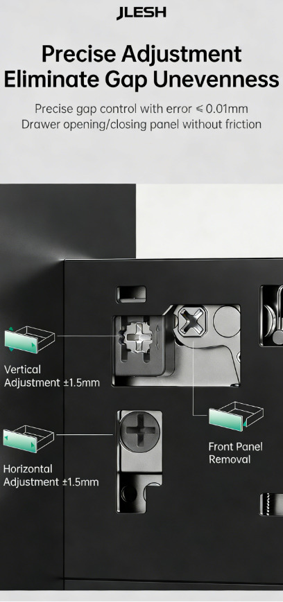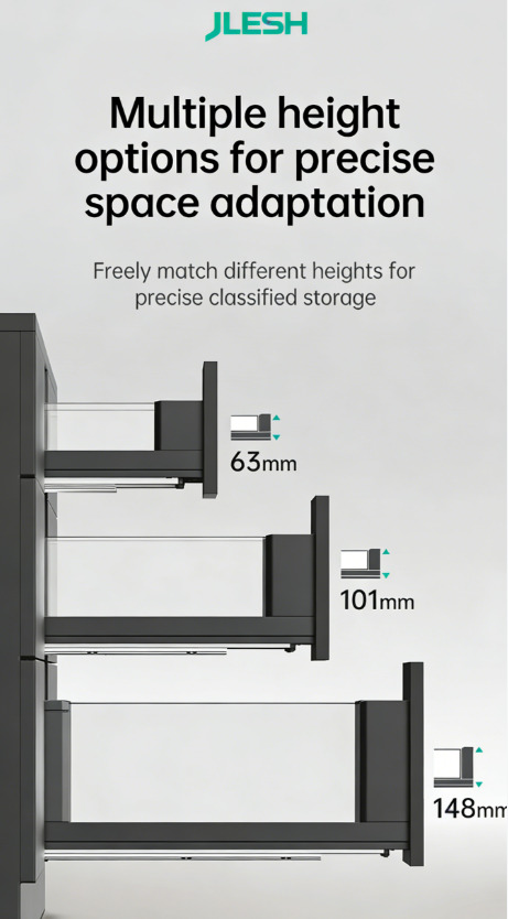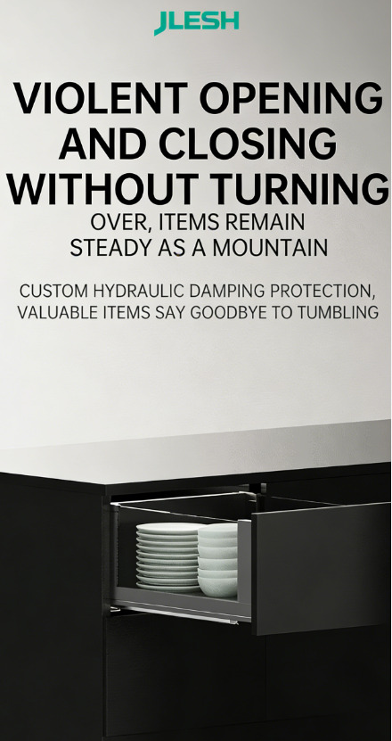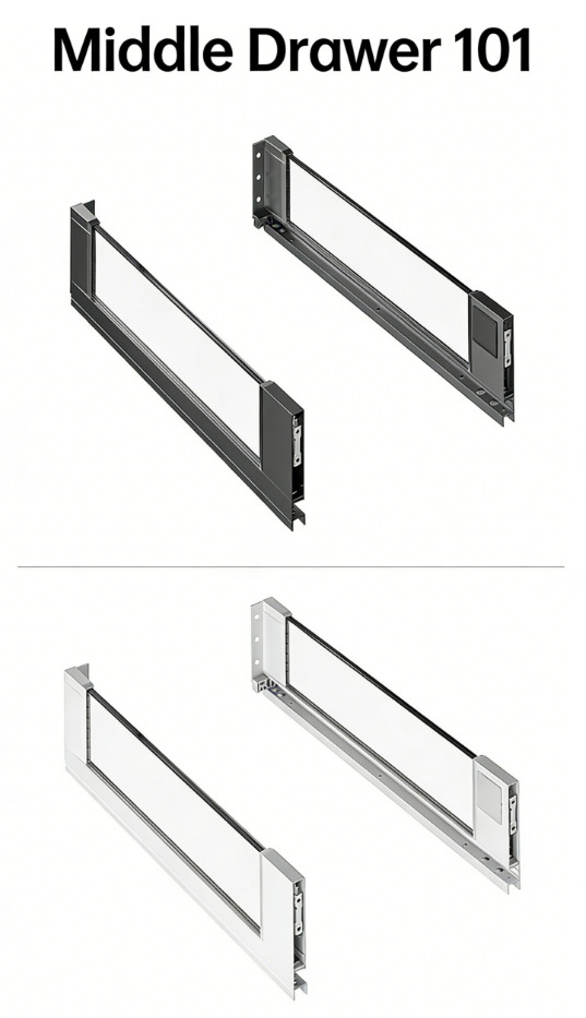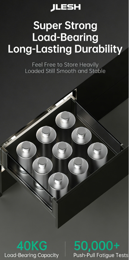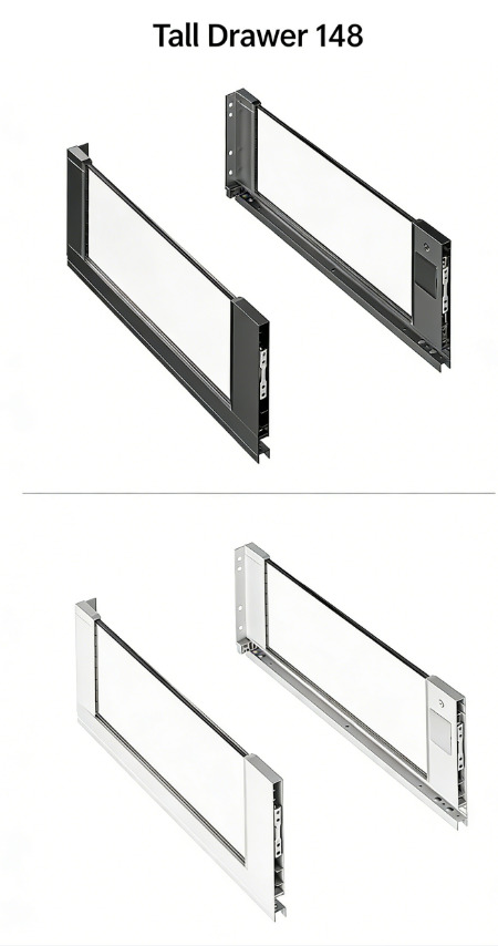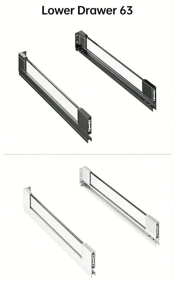 Полное выдвижение направляющих с доводчиком (совместимо со всеми типами направляющих, например, с механизмом открывания нажатием / механизмом открывания нажатием с доводчиком / механизмом открывания нажатием с ручкой).