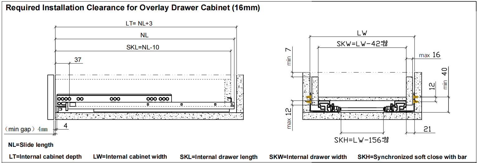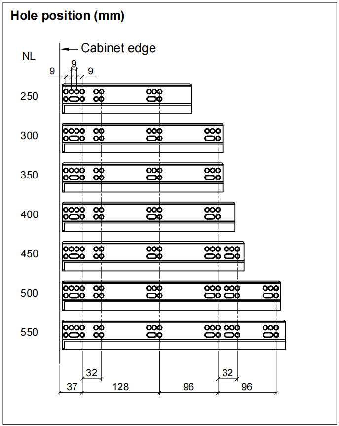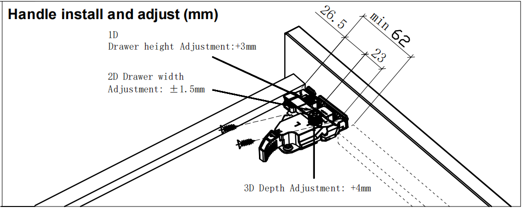 Регулировка ширины ящика: ±1,5 мм.