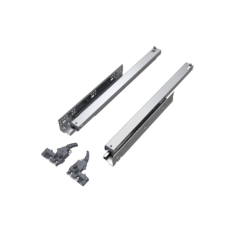 Трехсекционные синхронизированные направляющие для выдвижных ящиков с полным выдвижением и плавным закрыванием.